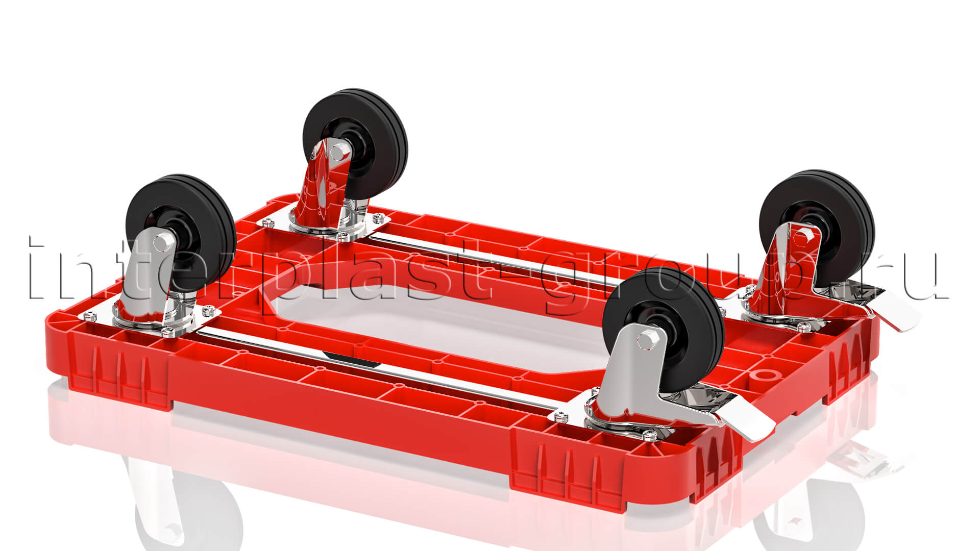Тележка пластиковая с отверстием 2 колеса с тормозом усиленная красная